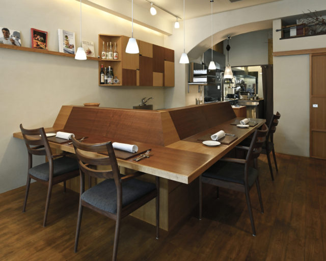 客席から厨房が見える店内は、食材や調理の過程、作る人間が見える安心感とライブ感が伝わるよう設計しました。また、明るく清潔で木の温もりが感じられるインテリア、空間で食事をお楽しみいただき、くつろぎのひと時になればと思います。